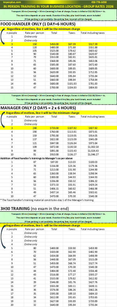 Rates / in person trainings